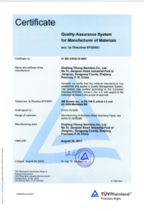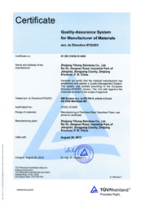公司嚴(yán)格按ISO9001:2015《質(zhì)量管理體系—要求》、ISO14001:2015《環(huán)境管理體系 要求及使用指南》、ISO 45001:2018《職業(yè)健康管理體系 要求及使用指南》和TSG 07—2019《特種設(shè)備生產(chǎn)和充裝單位許可規(guī)則》,建立完善的管理體系。公司擁有國內(nèi)較大的12000KN冷拔機(jī)組和先進(jìn)的全溫控不銹鋼固溶退火爐等生產(chǎn)設(shè)備,同時具有ET16-159渦流探傷儀、UT16-159超聲波探傷儀、UT159-830超聲波探傷儀、H159-630水壓試驗機(jī)、WAD—600液壓材料試驗機(jī)、4XB電腦金相顯微鏡、JQ—300沖擊試驗機(jī)、HBRVU—187.5硬度計、島津光譜儀、化學(xué)分析儀、晶間腐蝕試驗等完善的檢測設(shè)備。
